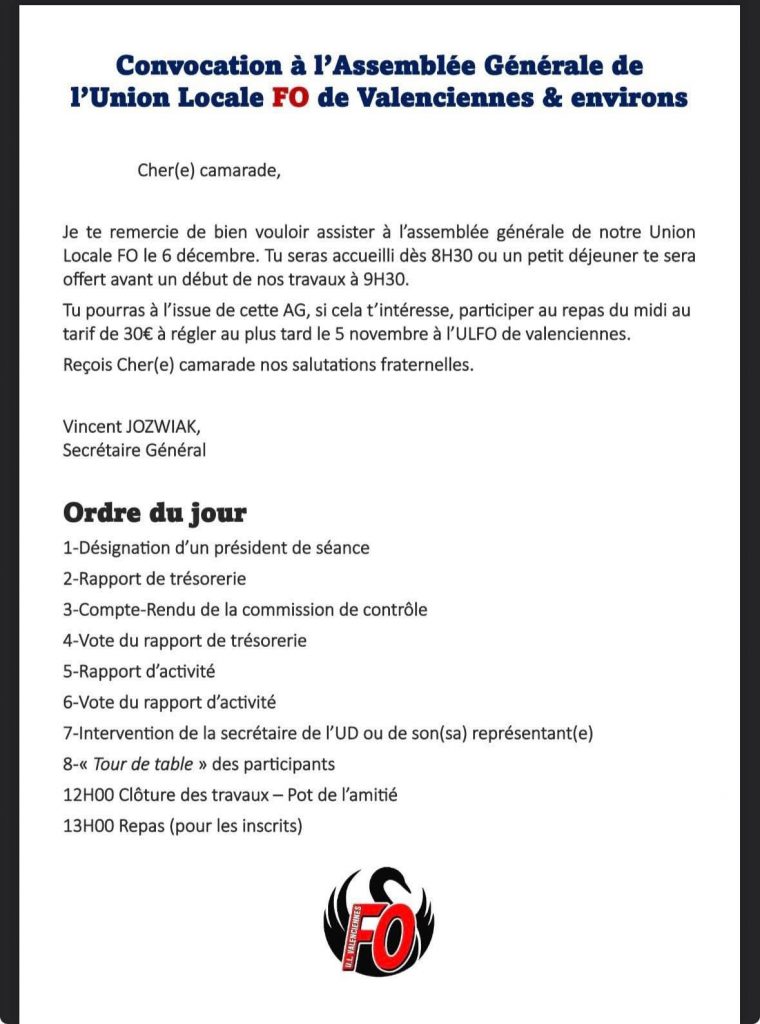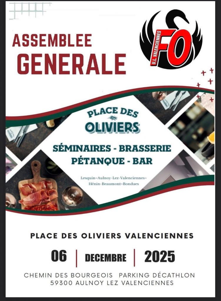 Convocation le 6 décembre à L’Assemblée Générale de l’UL FO de Valenciennes
