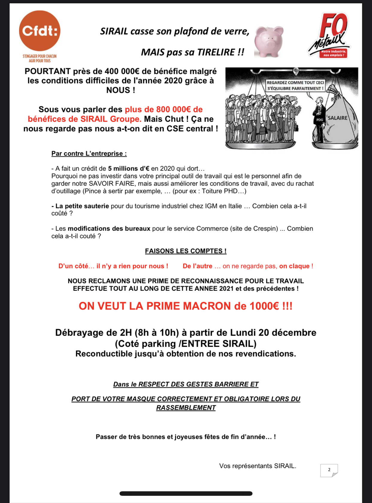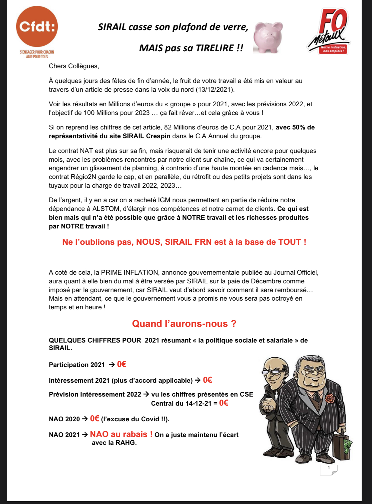 Depuis le début de semaine , les salariés de SIRAIL sous traitant de ALSTOM débrayent 2 heures par jour pour la défense du pouvoir d’achat !